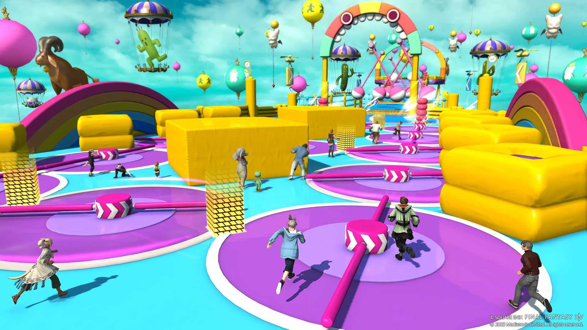Der Manderville-Gold-Saucer war schon vorher ein schwarzes Loch für Spielzeit – mit der Fall-Guys-Kollaboration ist er endgültig zur Chaos-Arena geworden. Seit Patch 6.51 gibt es dort Stolperville: einen Battle-Royale-Hindernislauf mit bis zu 24 Spielerinnen und Spielern, der direkt von Fall Guys inspiriert ist. Du rennst, rutschst und fliegst durch mehrere Runden, bis am Ende genau eine Bohne … äh, ein Warrior of Light übrig bleibt.